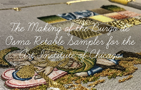 The presenter is Katherine Diuguid, and she’ll be taking the participants through her creation of the Burgo de Osma Retable Sampler that she designed and executed for the Art Institute of Chicago.