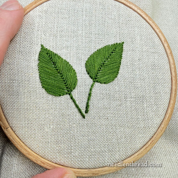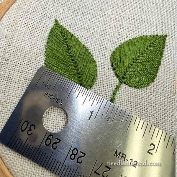 You can see here how long the longest stitches are on these leaves. They’re just under 3/4″ of an inch long.